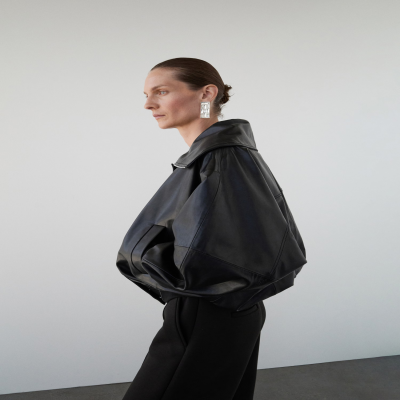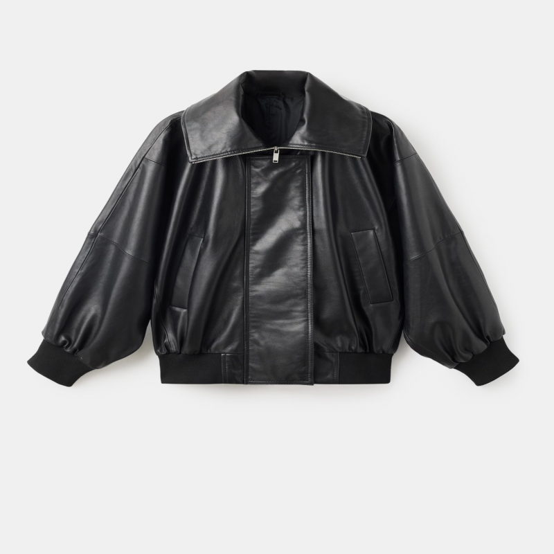 Confeccionada en 100% piel ovino, esta prenda presenta un diseño oversize con cuello camisero y solapas amplias con cierre de cremallera. Incluye manga larga con puños elásticos, dos bolsillos laterales y cierre oculto de cremallera y botones. Forro interior. Colección Selection