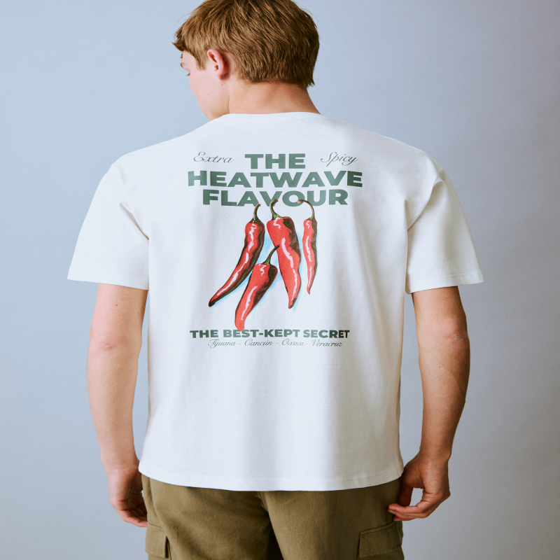 Tejido 100% algodón. Diseño recto. Diseño corto. Cuello redondo. Manga corta. Texto estampado en la parte frontal. Dibujo estampado en la parte trasera.