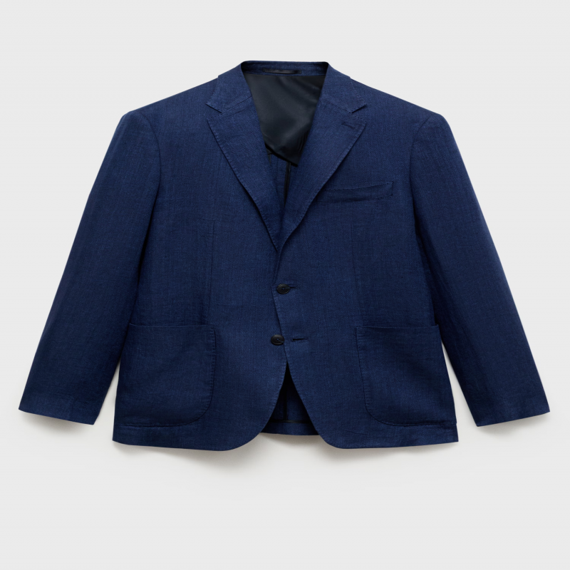 Slim fit. Tejido 100% de lino. Solapas de muesca y ojal. Bolsillo de ribete en el pecho. Cierre de botones. Dos bolsillos de parche laterales. Puños de tira abotonada. Producto en promoción.
