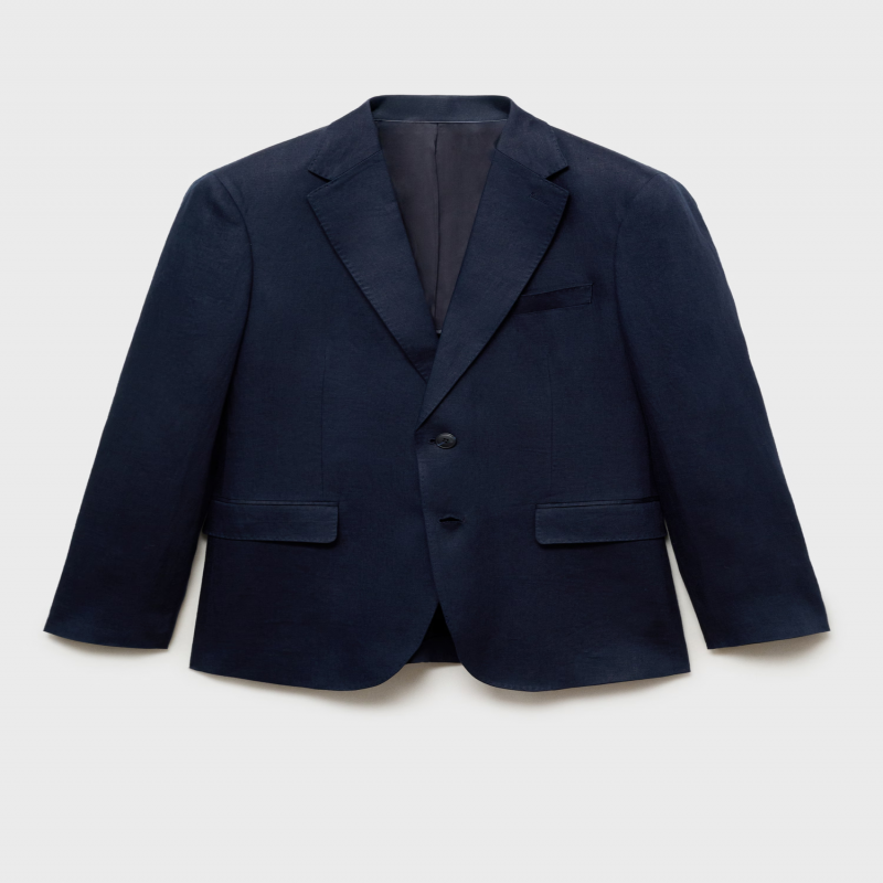 Slim fit. 100% Lino. Solapas de muesca y ojal. Bolsillo de ribete en el pecho. Dos bolsillos de solapa en la parte delantera. Manga larga con puños abotonados. Forro interior. Bolsillos interiores. Colección sastrería. Producto en promoción.