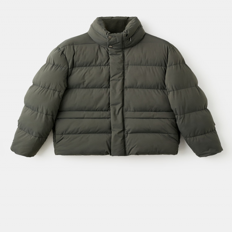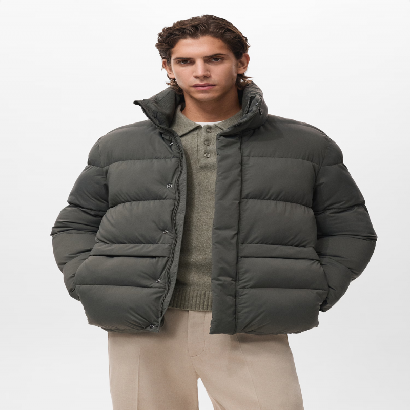 Silueta recta. Diseño acolchado. Water Repellent: Tejido técnico repelente al agua. Diseño corto. Cuello chimenea. Canalé en interior de bolsillos y cuello. Bolsillo de cremallera interior. Dos bolsillos laterales. Cierre delantero de cremallera y botones.